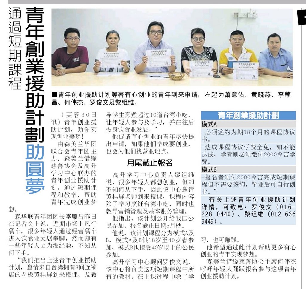 首三名成绩优越的学员将获得高升学习中心赞助机票到台湾将由台湾老师亲自带队了解台湾小吃营销模式。