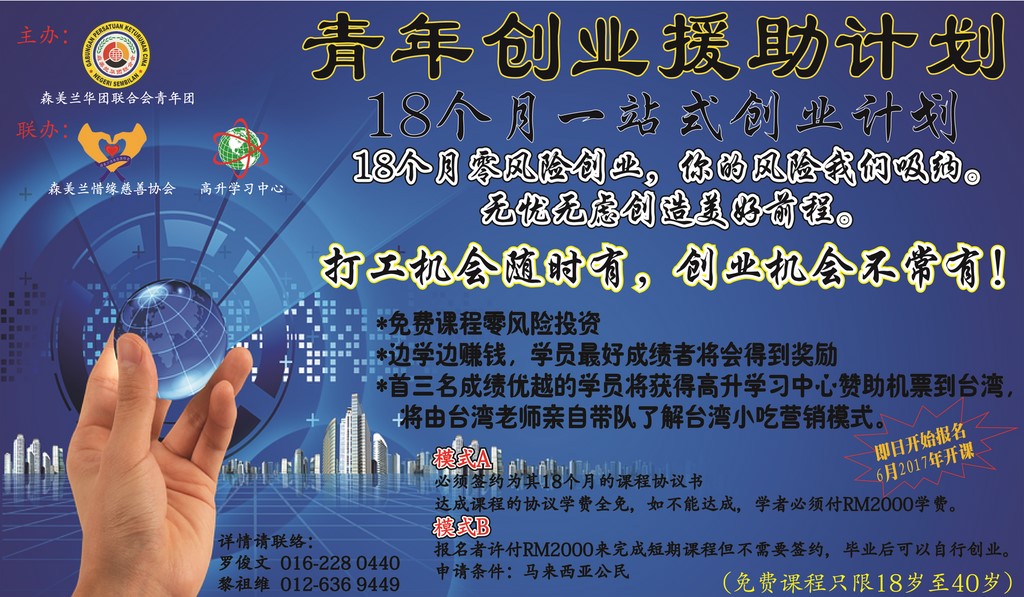 首三名成绩优越的学员将获得高升学习中心赞助机票到台湾将由台湾老师亲自带队了解台湾小吃营销模式。